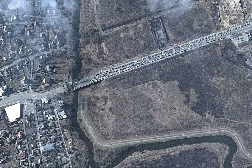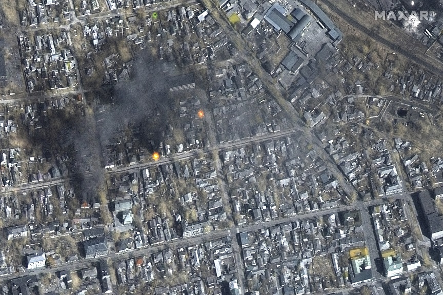 Παράλληλα, εικόνες που δόθηκαν στη δημοσιότητα από τον δορυφόρο της εταιρίας Maxar Technologies παρουσιάζει μέρος της καταστροφής που έχει υποστεί η πόλη της Μαριούπολης από τις επιθέσεις των ρωσικών δυνάμεων. Επιπλέον, δημοσιεύθηκαν φωτογραφίες και από το Ιρπίν, στα περίχωρα του Κιέβου όπου επίσης καταγράφηκαν σφοδρές μάχες, αλλά και από το Φιδονήσι.