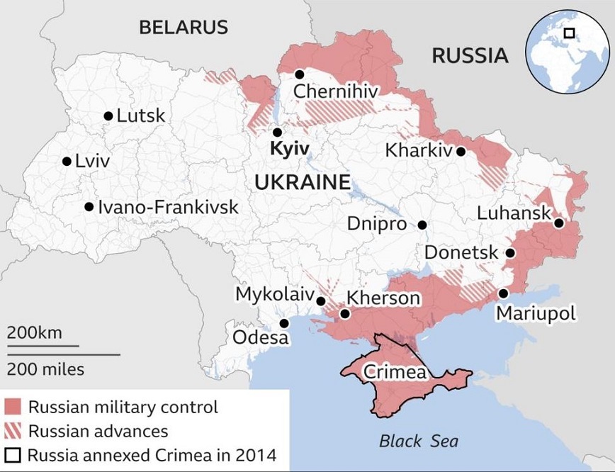 Τα σχόλιά του έρχονται καθώς νέες δορυφορικές εικόνες δείχνουν εκτεταμένες καταστροφές σε ολόκληρη την Ουκρανία, συμπεριλαμβανομένων κατεστραμμένων σπιτιών σε χωριό κοντά στο Κίεβο και σπιτιών που σιγοκαίνονται στην πολιορκημένη πόλη Μαριούπολη, όπου περισσότεροι από 2.500 άμαχοι έχουν χάσει τη ζωή τους, εκτιμούν Ουκρανοί αξιωματούχοι.