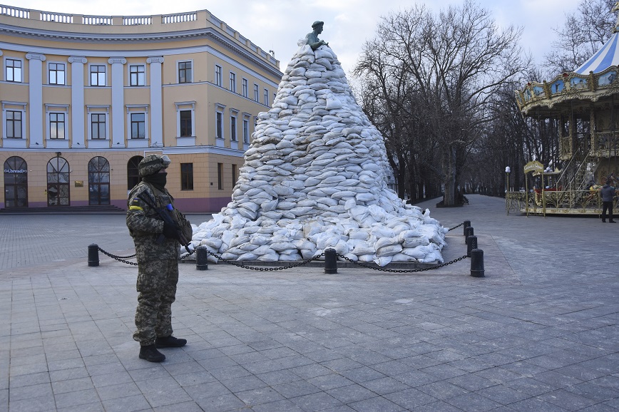Σημειώνεται, ότι η πόλη προετοιμάζεται για μέρες για πολιορκία, καθώς σε περίπτωση που πέσει, η Ουκρανία θα αποκοπεί πλήρως από την θάλασσα. Έτσι, οι κάτοικοι έχουν συγκροτήσει ομάδες πολιτοφυλακών και βοηθούν στη δημιουργία οχυρωματικών έργων, ενώ αγάλματα και μνημεία της πόλης έχουν καλυφθεί από σακιά με άμμο, ώστε να προστατευτούν σε περίπτωση βομβαρδισμού.