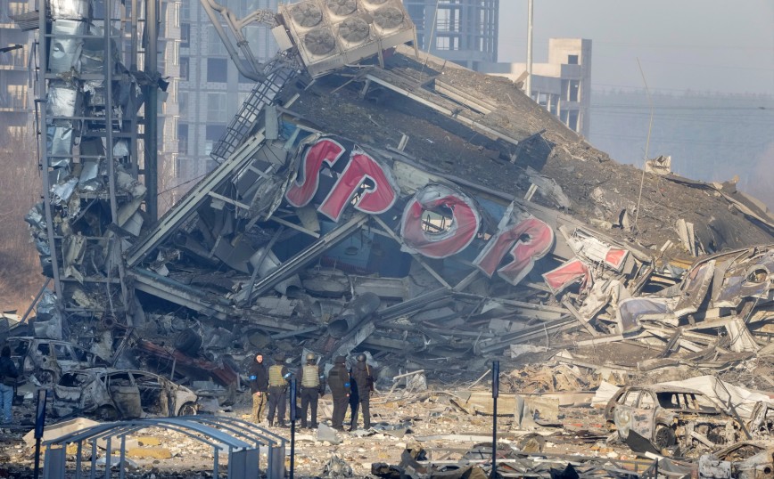 Τα πλάνα δείχνουν έναν πύραυλο να πέφτει στο γυμναστήριο Sport Life έξω από το εμπορικό κέντρο Retroville αργά την Κυριακή, ισοπεδώνοντας το κτίριο και αφήνοντας το εμπορικό κέντρο να έχει υποστεί σοβαρές ζημιές, αναφέρει η Daily Mail.
