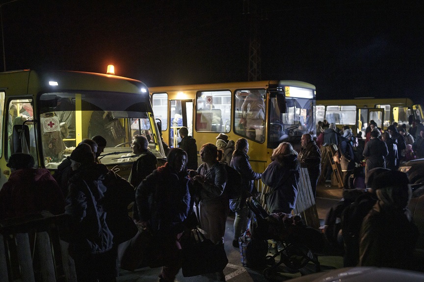 Η Διεθνής Επιτροπή του Ερυθρού Σταυρού (ICRC) έστειλε χθες Παρασκευή μια ομάδα για να ηγηθεί μιας πομπής περίπου 54 ουκρανικών λεωφορείων και άλλων ιδιωτικών οχημάτων να φύγουν από την πόλη, αλλά γύρισαν πίσω, λέγοντας ότι οι συνθήκες καθιστούσαν αδύνατη τη συνέχιση της διαδρομής.