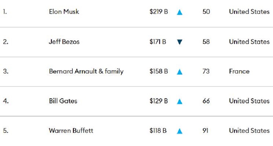 - Έλον Μασκ: 219 δισ. δολάρια (ΗΠΑ – Tesla)