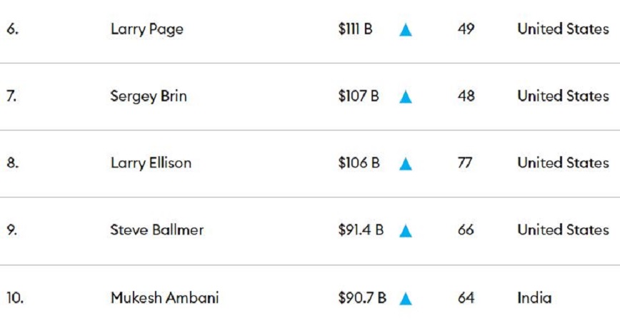 - Λάρι Πέιτζ: 111 δισ. δολάρια (ΗΠΑ – Google)