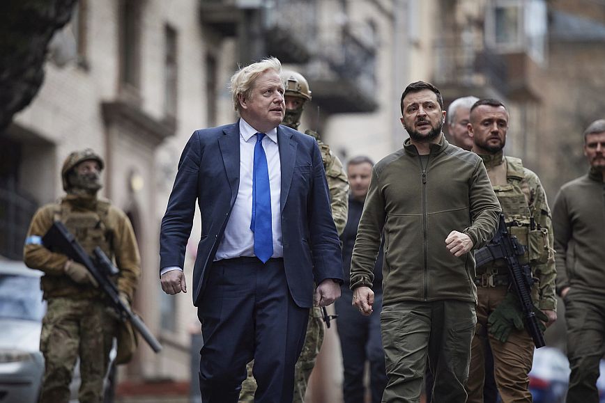 «Χάρη στην ακλόνητη ηγεσία του προέδρου Ζελένσκι, στον ακατανίκητο ηρωισμό και το θάρρος του ουκρανικού λαού τα τερατώδη σχέδια του (Βλαντίμιρ) Πούτιν ματαιώθηκαν», δήλωσε ο Μπόρις Τζόνσον μετά τη συνάντησή του με τον Βολοντίμιρ Ζελένσκι, σύμφωνα με ανακοίνωση που εξέδωσε η Ντάουνινγκ Στριτ.