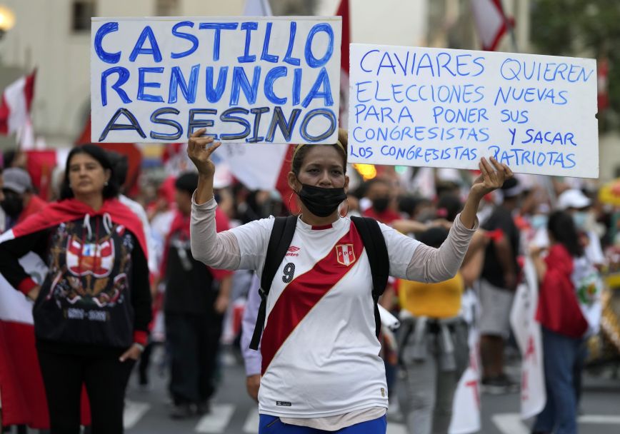 Βαρύ φαίνεται πώς είναι το κλίμα στο Περού για τον πρόεδρο της χώρας Πέδρο Καστίγιο, με αρκετές εκατοντάδες πολίτες να διαμαρτύρονται, απαιτώντας την παραίτησή του. Σε διαδήλωση που έγινε το Σάββατο στη Λίμα συμμετείχαν πολιτικά κόμματα και μη κυβερνητικές οργανώσεις.