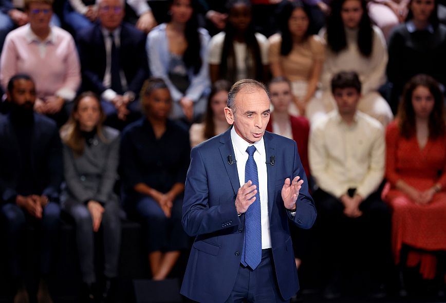Ο Ερίκ Ζεμούρ είναι 63 ετών, υπήρξε δημοσιογράφος της εφημερίδας Figaro από το 1996, αλλά έγινε γνωστός από τις εμφανίσεις του στην τηλεόραση και το ραδιόφωνο από τη δεκαετία του 2000. Διακρίθηκε για τις εξαιρετικά συντηρητικές θέσεις του, όπως για παράδειγμα το αντιφεμινιστικό δοκίμιό του «Το πρώτο φύλλο» (2006).
