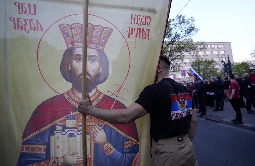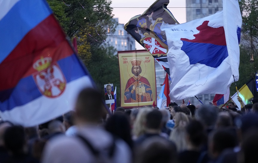 Χιλιάδες Σέρβοι, ανεμίζοντας ρωσικές και σερβικές σημαίες και κρατώντας αφίσες του Βλαντίμιρ Πούτιν, πραγματοποίησαν χθες Παρασκευή (15/4) πορεία στο κέντρο του Βελιγραδίου και συγκεντρώθηκαν έξω από την πρεσβεία της Ρωσίας για να εκφράσουν την αντίθεσή τους στην προσπάθεια της κυβέρνησής τους να κρατήσει αποστάσεις από τη Μόσχα όσον αφορά στη ρωσική εισβολή στην Ουκρανία.
