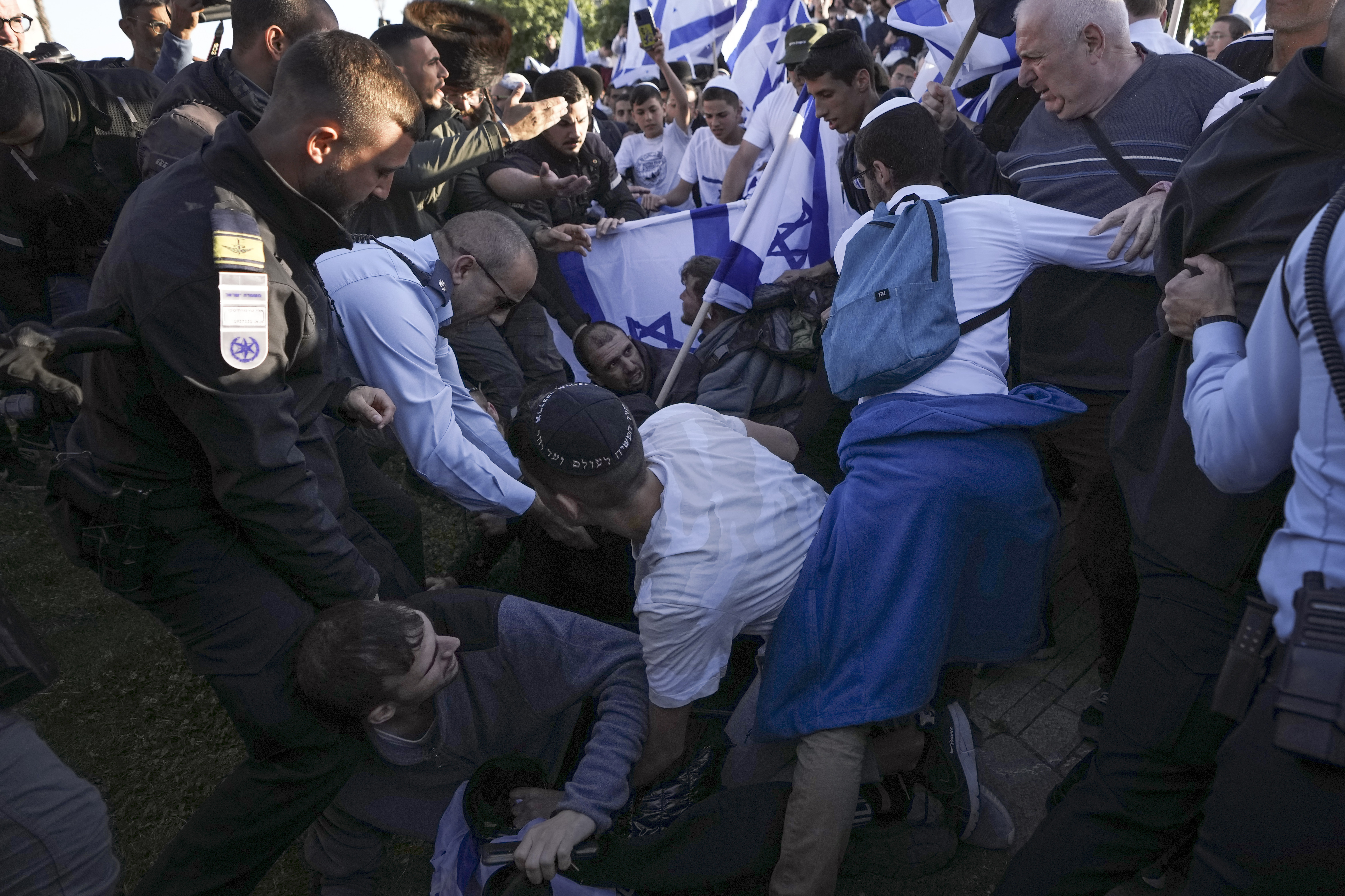 Διαδηλωτές με ισραηλινές σημαίες συγκεντρώθηκαν χθες το απόγευμα στην πλατεία Τσαχάλ, κοντά στο κτίριο του δήμου, απέναντι από την παλιά πόλη. Εκατοντάδες συμμετέχοντες στην κινητοποίηση προσπάθησαν να φθάσουν στην πύλη της Δαμασκού, την κύρια είσοδο στη μουσουλμανική συνοικία. Όμως η αστυνομία τους εμπόδισε. Ανάμεσα στους διαδηλωτές ήταν αρκετοί υποστηρικτές του ακροδεξιού βουλευτή Ιταμάρ Μπεν Γκβιρ, στον οποίο νωρίτερα είχε απαγορευθεί ρητώς η πρόσβαση από τον πρωθυπουργό Ναφτάλι Μπένετ.