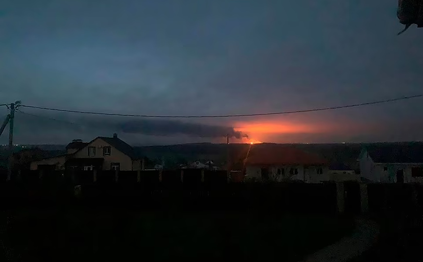 Φλόγες και καπνός εθεάθησαν να υψώνονται στον ουρανό πάνω από το χωριό Staraya Nelidovka, στην περιοχή Belgorod, τις πρώτες πρωινές ώρες.