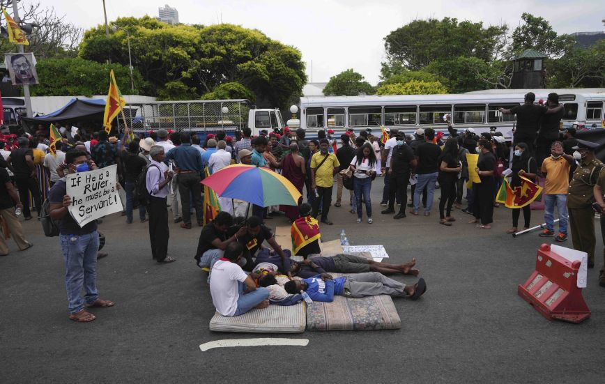 Οι διαδηλωτές, ανεμίζοντας κόκκινες σημαίες και φωνάζοντας συνθήματα έξω από την προεδρία, ζήτησαν να αποχωρήσουν από την εξουσία ο αρχηγός του κράτους και ο μεγαλύτερος αδελφός του Μαχίντα Ρατζαπάξα, ο πρωθυπουργός της χώρας, προσάπτοντάς τους καταστροφική διαχείριση της οικονομικής κρίσης, της χειρότερης από την ανεξαρτησία της νήσου.