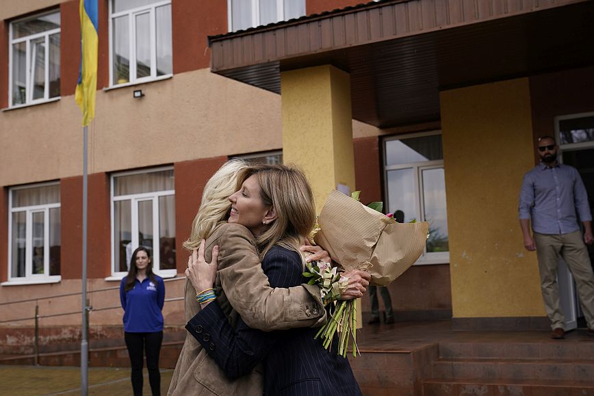 Η Τζιλ Μπάιντεν και η Ολένα Ζελένσκα είχαν συνάντηση σε σχολείο που μετατράπηκε σε καταφύγιο για τους Ουκρανούς που έχουν φύγει από τις εστίες τους λόγω του πολέμου.