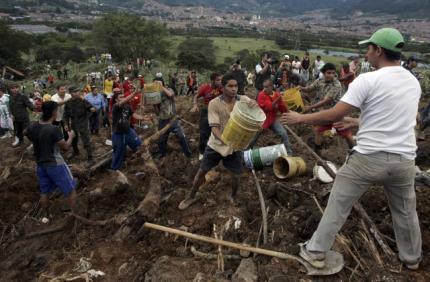 Σύμφωνα με καταμέτρηση που έκανε στη διάρκεια της νύχτας της Κυριακής προς σήμερα Δευτέρα ο Ερυθρός Σταυρός, οι άνθρωποι που έχουν θαφτεί στα ερείπια περίπου τριάντα κατοικιών στο Μπέγιο, προάστιο του Μεντεγίν, ανέρχονται σε 145.
