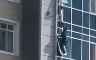 Δραματικές είναι οι εικόνες που καταγράφηκαν στο Καζακστάν με έναν ήρωα να ανεβαίνει σε ένα πολυώροφο κτίριο για να σώσει ένα μικρό κορίτσι, το οποίο εντόπισε να κρέμεται σε παράθυρο στον όγδοο όροφο.
