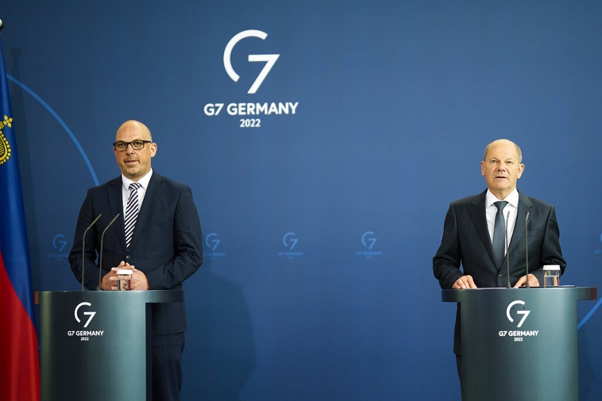 Σε συνέντευξη Τύπου που παραχώρησε από κοινού με τον πρωθυπουργό του Λιχτενστάιν Ντάνιελ Ρις, ο Γερμανός καγκελάριος χαρακτήρισε ως «ιστορικό βήμα για την αμυντική Συμμαχία και για την Ευρώπη» και διαβεβαίωσε ότι σε περίπτωση αντίδρασης της Ρωσίας πριν ολοκληρωθεί η διαδικασία ένταξης, «οι δύο χώρες μπορούν να βασίζονται στην υποστήριξή μας».