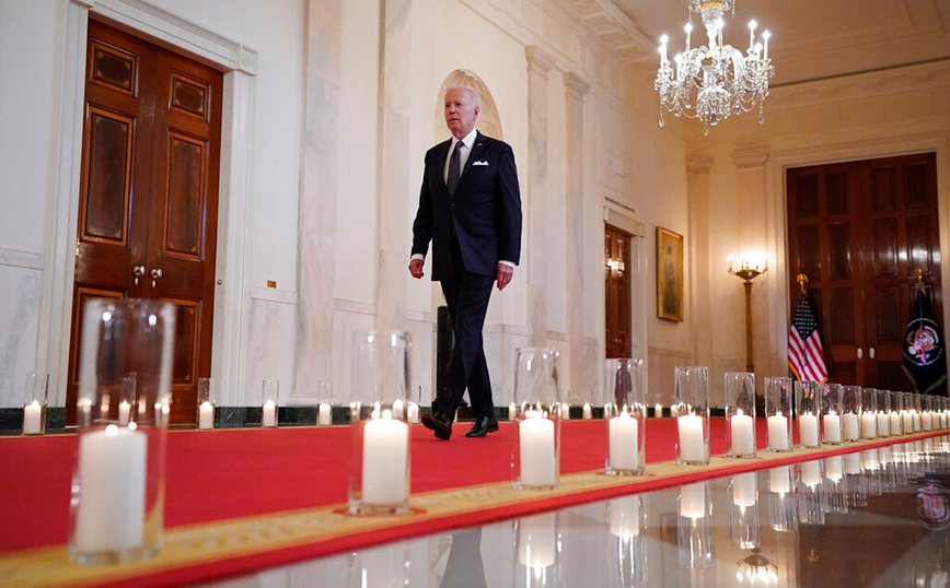 Ο πρόεδρος των ΗΠΑ Τζο Μπάιντεν φτάνει στο Λευκό Οίκο για να μιλήσει για τον τελευταίο γύρο μαζικών πυροβολισμών που σημειώθηκε στη χώρα και σόκαρε την παγκόσμια κοινή γνώμη, από την Ανατολική Αίθουσα του Λευκού Οίκου. Ο Μπάιντεν προσπαθεί να αυξήσει την πίεση στο Κογκρέσο για την υιοθέτηση αυστηρότερων περιορισμών στην οπλοκατοχή, αφού τέτοιες προσπάθειες απέτυχαν μετά από προηγούμενα κρούσματα.