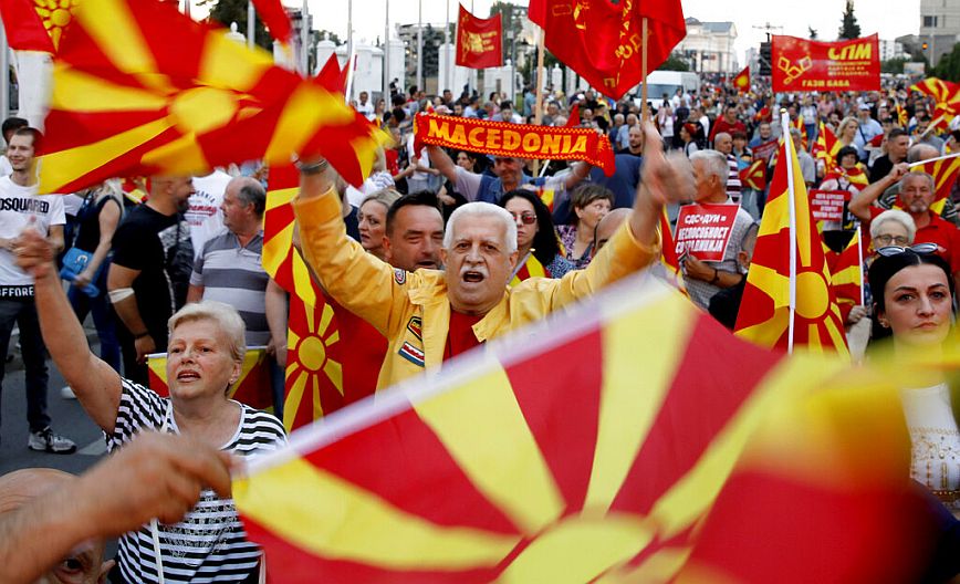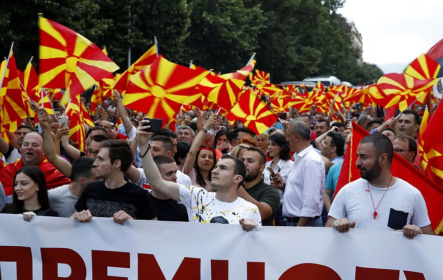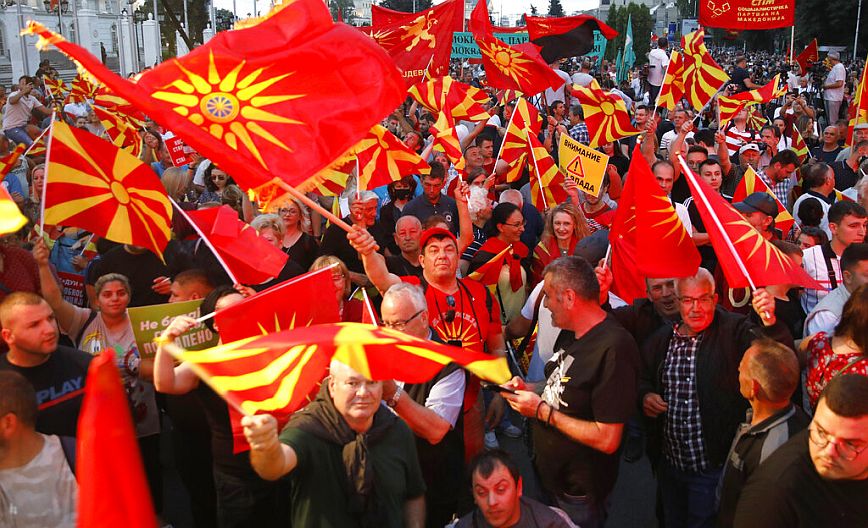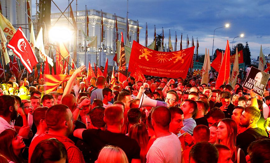 Στη συγκέντρωση που πραγματοποιήθηκε μπροστά από το κυβερνητικό μέγαρο, στα Σκόπια, παραβρέθηκαν δεκάδες χιλιάδες υποστηρικτές της αντιπολίτευσης από όλη τη χώρα.