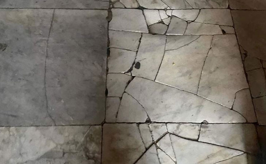 Όπως σημειώνει το ίδιο δημοσίευμα: «Είναι ορατό πως τα μάρμαρα που ήταν ήδη σπασμένα σε κάποια σημεία και βρίσκονται στην αυτοκρατορική διαδρομή στην πόρτα εξόδου, έχουν και σε άλλα σημεία σπάσει».