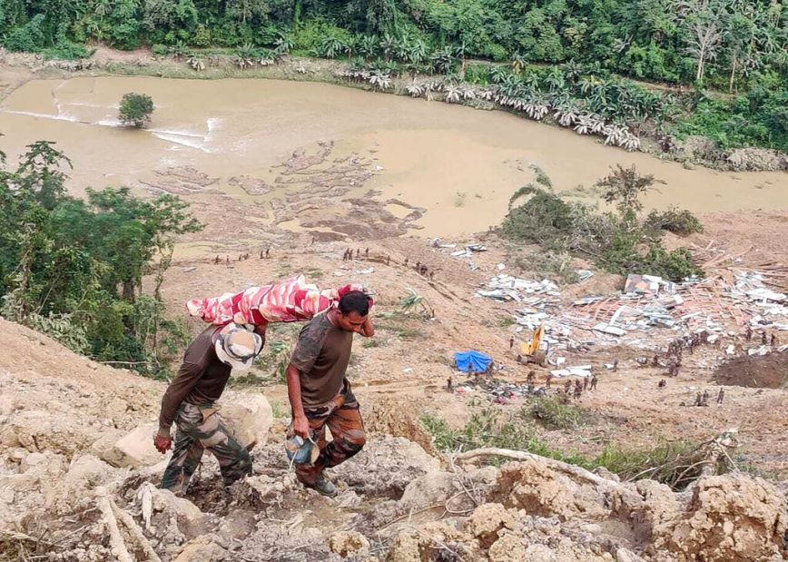 Σωστικά συνεργεία και οι δυνάμεις ασφαλείας συνέχιζαν να ψάχνουν επιζώντες στον τόπο της καταστροφής, εργοτάξιο όπου κατασκευάζονταν σιδηροτροχιές στην πολιτεία Μανιπούρ, που θάφτηκε κάτω από τεράστιες ποσότητες λάσπης και βράχων.