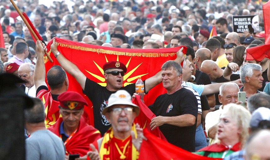 Τις συγκεντρώσεις αυτές υποστηρίζει το μεγαλύτερο κόμμα της αντιπολίτευσης, VMRO-DPMNE, το οποίο αντιτίθεται σφόδρα στην πρόταση, ισχυριζόμενο ότι αυτή «ευνοεί τα βουλγαρικά αιτήματα που θέτουν σε κίνδυνο την ιστορία, τη γλώσσα, την ταυτότητα και την πολιτιστική κληρονομιά της χώρας». Παρόμοια συγκέντρωση θα διεξαχθεί και αύριο το βράδυ στα Σκόπια.