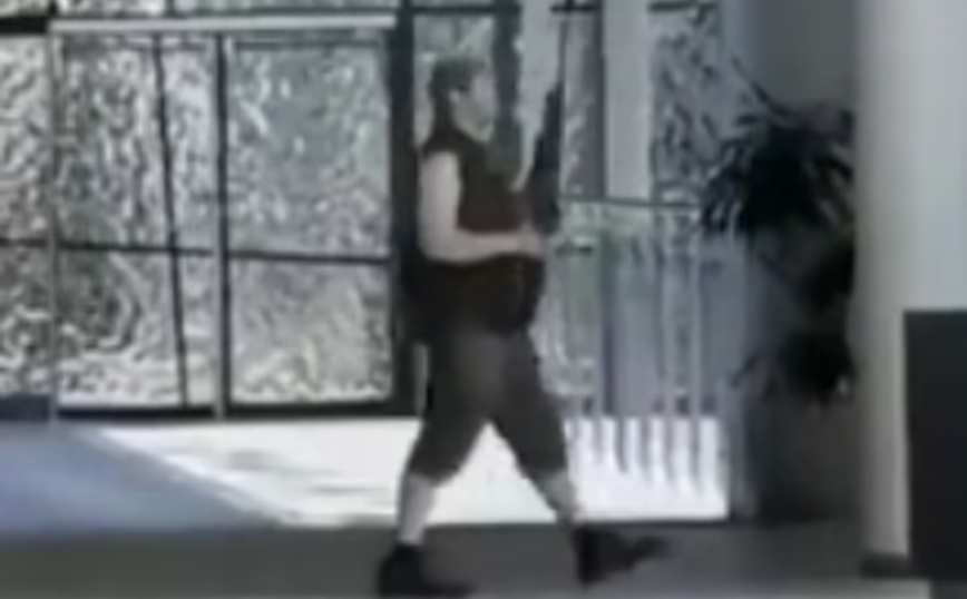 Στις εικόνες που δημοσίευσε η Daily Mail φαίνεται ο δράστης με το όπλο του να κυνηγάει τα θύματά του στο εμπορικό κέντρο.