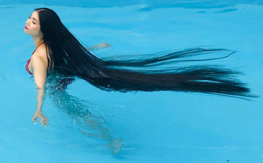 Συγκεκριμένα, χρειάζεται περισσότερο από μία ώρα για να λούσει τα μαλλιά της και δύο ώρες για να τα στεγνώσει με πιστολάκι. «Πλένω τα μαλλιά μου δύο φορές την εβδομάδα και προσέχω την περιποίηση. Μετά το λούσιμο, τα στεγνώνω γρήγορα. Χρειάζεται μια ώρα για να λούσω τα μαλλιά μου και να κάνω μασάζ στο τριχωτό της κεφαλής, δύο ώρες για να τα στεγνώσω και μετά τα χτενίζω. Κάνω τα δυνατά μου για να λούσω τα μαλλιά μου για να μην καταστραφούν. Χρειάζονται συνολικά τρεις ώρες για να γίνει αυτό», αναφέρει σχετικά με τον χρόνο περιποίησης που ξοδεύει.