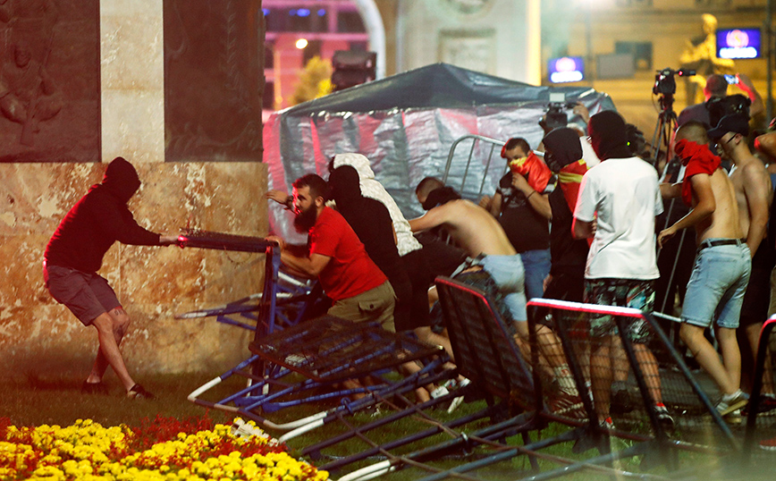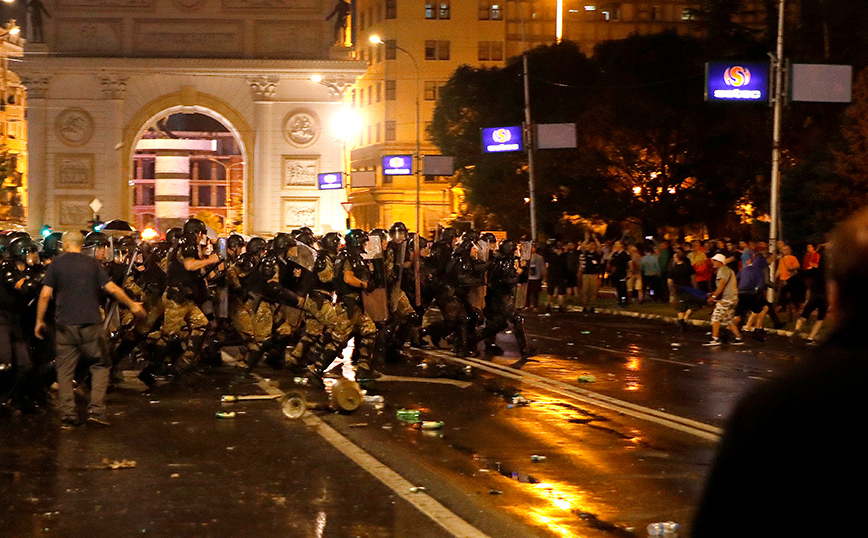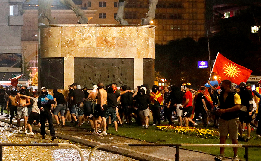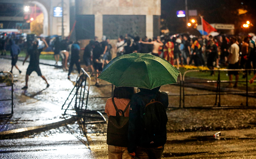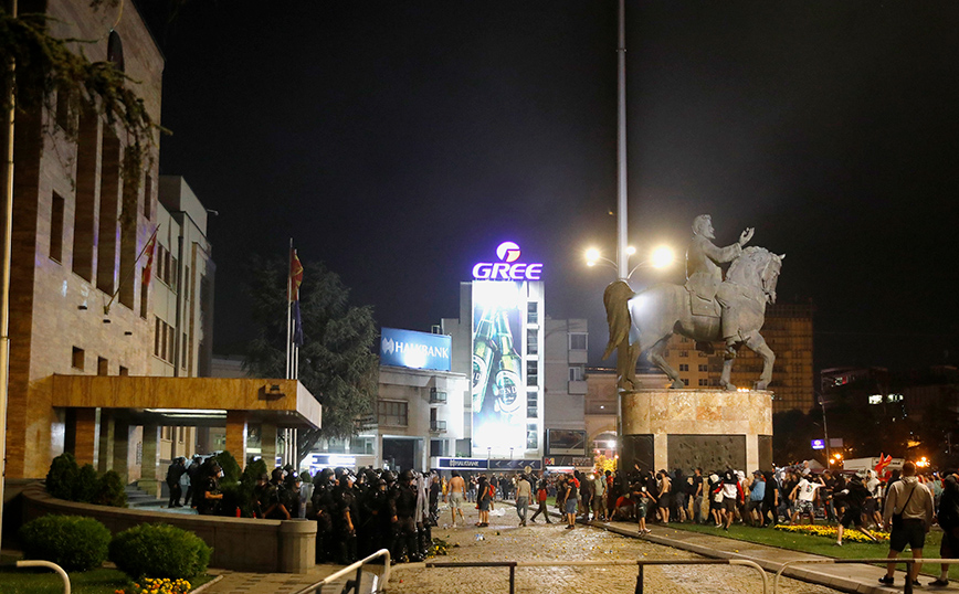 Μερικές χιλιάδες διαδηλωτές συγκεντρώθηκαν –για τέταρτο συνεχόμενο βράδυ– αρχικά μπροστά στο κτήριο της κυβέρνησης στα Σκόπια και ακολούθως κινήθηκαν προς το υπουργείο Εξωτερικών, όπου πέταξαν αντικείμενα, προκαλώντας φθορές στην κεντρική είσοδο του κτηρίου. Στη συνέχεια οι διαδηλωτές έφθασαν μπροστά στο κτήριο της Βουλής, στο κέντρο των Σκοπίων, όπου μερίδα μασκοφόρων παραβίασε τα προστατευτικά μεταλλικά κιγκλιδώματα και επιτέθηκε με πέτρες και καπνογόνα στις παρατεταγμένες αστυνομικές δυνάμεις, σύμφωνα με ανταπόκριση του Αθηναϊκού Πρακτορείου Ειδήσεων. Ισχυρή δύναμη της αστυνομίας απώθησε τους μασκοφόρους διαδηλωτές λίγο πριν τα μεσάνυχτα και προσήγαγε 11 εξ αυτών.