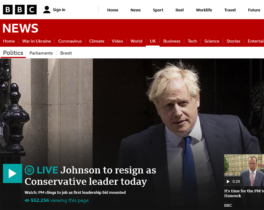 «Ο Μπόρις Τζόνσον θα παραιτηθεί σήμερα από την ηγεσία του Συντηρητικού Κόμματος», σχολίασε ο πολιτικός αναλυτής του BBC Κρις Μέισον.