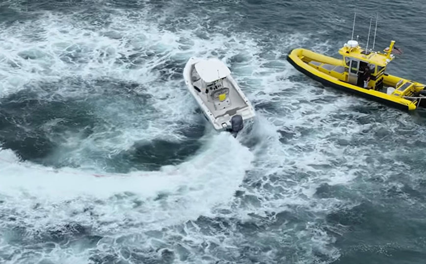 Μια τρομακτική εμπειρία βίωσαν δύο άντρες στη θάλασσα της Μασαχουσέτης των ΗΠΑ, καθώς έχασαν τον έλεγχο τον έλεγχο του σκάφους τους, έπεσαν στο νερό και εγκλωβίστηκαν από το τρομακτικό φαινόμενο που ονομάζεται «κύκλος του θανάτου».