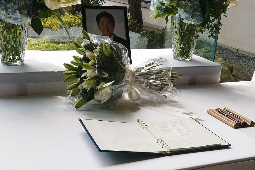 Πλήθος πολιτών είχε συγκεντρωθεί έξω από την οικία του Άμπε καθώς και στο σημείο της επίθεσης, όπου ο ένοπλος τον πυροβόλησε και τον τραυμάτισε σοβαρά τον πρώην πρωθυπουργό. Περισσότεροι από 100 άνθρωποι περίμεναν στην ουρά σήμερα το μεσημέρι (τοπική ώρα) για να αφήσουν λουλούδια σε ένα τραπέζι πάνω στο οποίο ήταν τοποθετημένη μια φωτογραφία του δολοφονημένου πρώην πρωθυπουργού.