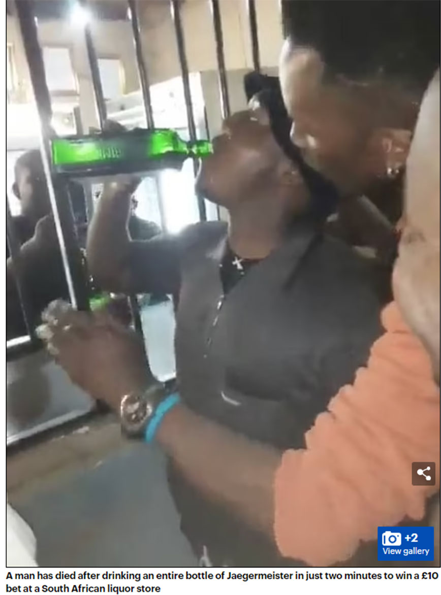 Σύμφωνα με την dailymail.co.uk, το περιστατικό σημειώθηκε στο χωριό Mashamba στη περιοχή Limpopo, όταν ο άνδρας ηλικίας περίπου 25 με 30 ετών, πήρε μέρος σε πρόκληση, που ήταν ποιος μπορούσε να πιει πιο γρήγορα ένα μπουκάλι Jaegermeister, με το έπαθλο να είναι το ποσό των 12 ευρώ περίπου.