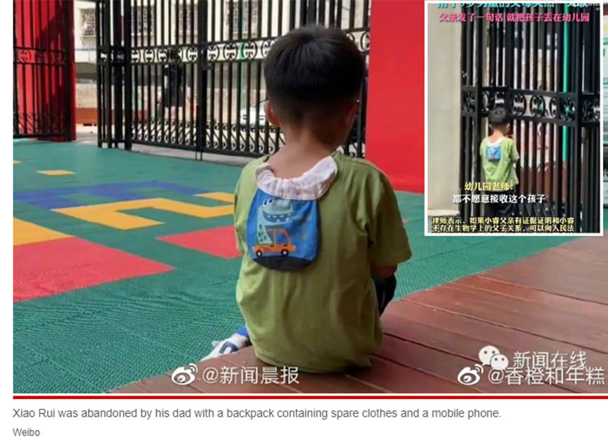 Την περασμένη εβδομάδα λοιπόν, ο πατέρας του Xiao Rui πήγε το παιδί στο σχολείο, όμως στο σχόλασμα δεν πέρασε ποτέ να το πάρει. Οι δάσκαλοι ανησύχησαν και επικοινώνησαν μαζί του, καθώς η ώρα περνούσε, μόνο και μόνο για να λάβουν την απάντηση «δεν είναι δικό μου παιδί».