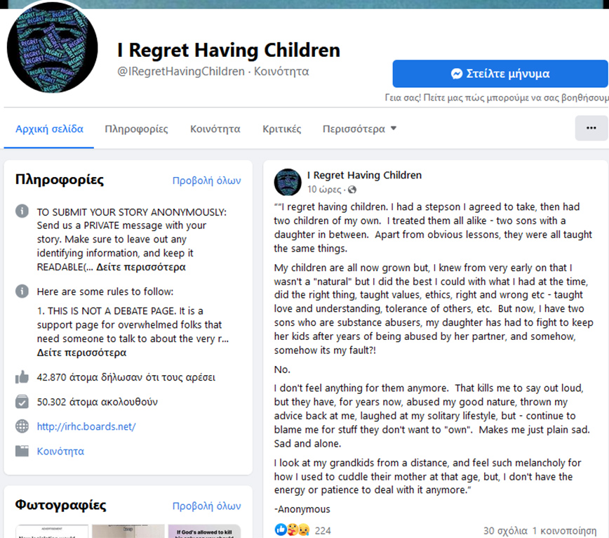 Οι απρόθυμοι γονείς, από όλο τον κόσμο μοιράστηκαν τις ιστορίες τους ανώνυμα σε μια ομάδα στο Facebook με την ονομασία I Regret Having Children.