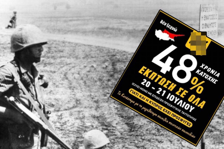 Σύμφωνα με το 24news.com.cy, γνωστό κατάστημα παιχνιδιών στην Κύπρο ανακοίνωσε διήμερη έκπτωση 20 και 21 Ιουλίου επί των προιόντων του, της τάξεως του 48%, όσα δηλαδή και τα χρόνια από την τουρκική εισβολή, ανήμερα της μαύρης επετείου στη Μεγαλόνησο.