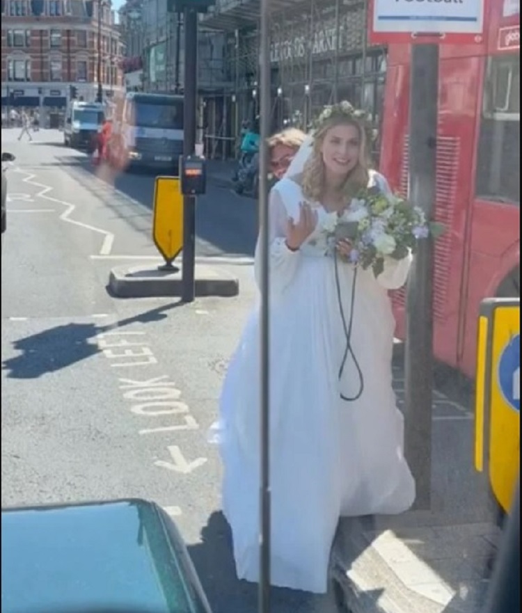 Καθώς το θέαμα της νύφης στο κέντρο της πόλης ήταν αρκετά… αξιοπερίεργο, έβγαλε το κινητό του για να απαθανατίσει την μοναδική αυτή στιγμή. Εκείνη τότε τον είδε και του ζήτησε να την πάει στην εκκλησία, όπου την περίμεναν ο γαμπρός και οι καλεσμένοι της, λέγοντάς του ότι είχε ήδη αργήσει 45 λεπτά, καθώς δεν έβρισκε ταξί! «Όλοι, και κυρίως ο μέλλων σύζυγός της, την περίμεναν στο Holy Trinity Brompton», δήλωσε ο οδηγός.