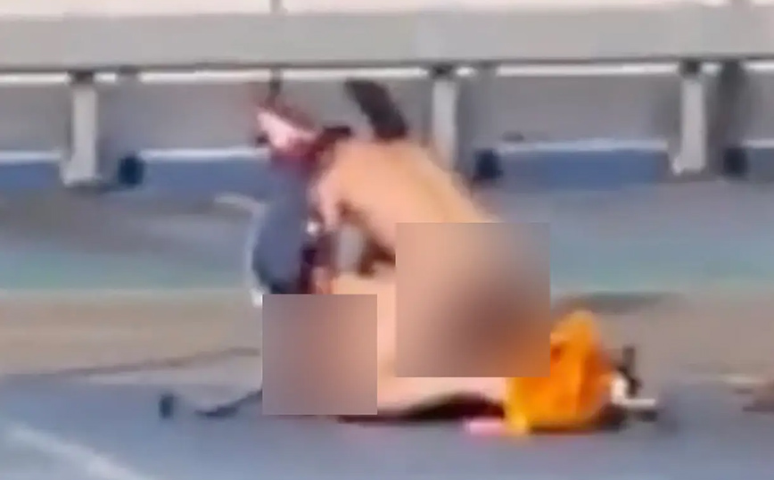 Το σοκαριστικό περιστατικό καταγράφηκε στο Μπέρμινγχαμ την περασμένη Τρίτη. Το βίντεο με το ζευγάρι κατέγραψε ένας εργαζόμενος σε ένα κοντινό κτίριο με γραφεία, ο οποίος ανάρτησε στη συνέχεια τις εικόνες στο Twitter.