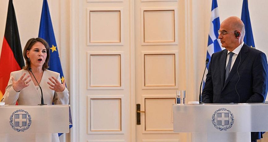 Η σημαντικότερη δήλωση για τα ελληνοτουρκικά έγινε αναμφίβολα στην Αθήνα με την Αναλένα Μπέρμποκ να βάζει τέλος πλέον και η ίδια δια ζώσης στα περί «ίσων αποστάσων» μεταξύ Αθήνας και Άγκυρας ως προς την αμφισβήτηση της ελληνικής εδαφικής ακεραιότητας των νησιών του αν. Αιγαίου. «Κανένας δεν έχει δικαίωμα να την αμφβισβητεί» είπε χαρακτηριστικά προκαλώντας την οργισμένη αντίδραση του Τούρκου υπ. Εξωτερικών Τσαβούσογλου, ο οποίος κατηγόρησε τη Γερμανία για μεροληψία, εκφράζοντας τη βαθιά απογοήτευσή του για το τέλος της «ουδέτερης και ισορροπημένης» πολιτικής παλαιότερων κυβερνήσεων (αναφερόμενος κυρίως στην Άγκελα Μέρκελ). Την ίδια θέση πάντως χωρίς επιφυλάξεις και παραθυράκια επανέλαβε η Αν. Μπέρμποκ στην Κωνσταντινούπολη απαντώντας στα «περί ελληνικής και κυπριακής προπαγάνδας, θύμα της οποίας πέφτει η Γερμανία» του Τούρκου ομολόγου της, καταδικάζοντας την πολιτική κλιμάκωσης στην ανατολική Μεσόγειο.
