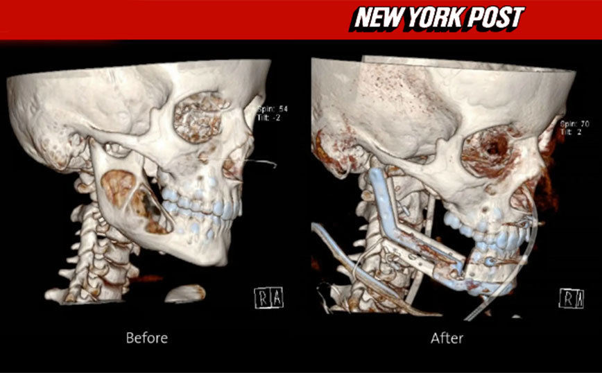 Έτσι, οι γιατροί αφαίρεσαν τον όγκο και πήραν ένα τμήμα του οστού της περόνης στο κάτω δεξιό πόδι του παιδιού, για να αντικαταστήσει το μέρος της δεξιάς γνάθου, όπου εμφανίστηκε ο όγκος.