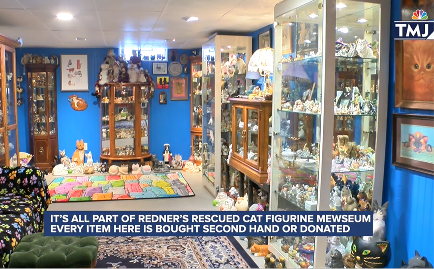 Ο Σον Ρέντνερ και η Χίλαρι Σίγκερ Ρέντνερ είπαν ότι αναμόρφωσαν το υπόγειο του σπιτιού τους στο Menomonee Falls, ώστε να μπορούν να αυξήσουν τον αριθμό των ειδωλίων γάτας που εκτίθενται στο σπίτι, γνωστό και ως «Redner’s Rescued Cat Figurine Mewseum», από 4.000 το 2020 σε 7.000 φέτος τον Ιούλιο.