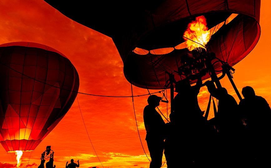 Συνεργεία φουσκώνουν αερόστατα θερμού αέρα κατά τη διάρκεια του 39ου ετήσιου Φεστιβάλ Αερόστατων της Λοταρίας του Νιου Τζέρσεϊ στο αεροδρόμιο Solberg στο Readington. Στο φεστιβάλ, η διάρκεια του οποίου ήταν τριήμερη, πήραν μέρος 100 αερόστατα.