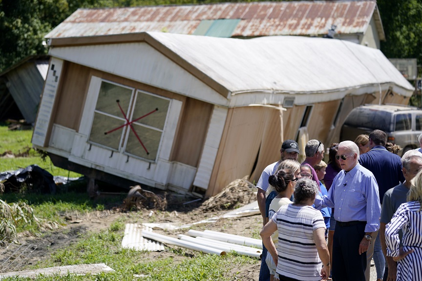 Ο πρόεδρος των ΗΠΑ ενέκρινε την προηγούμενη εβδομάδα το σχέδιο για την ανακούφιση των πληγέντων από την καταστροφή. Η Πρώτη Κυρία Τζιλ Μπάιντεν βοήθησε προσωπικά στην αποστολή δεμάτων με ρουχισμό και είδη πρώτης ανάγκης για τους πλημμυροπαθείς. Αυτό είναι το πρώτο ταξίδι του προέδρου Μπάιντεν, αφότου ανέρρωσε από την Covid-19.