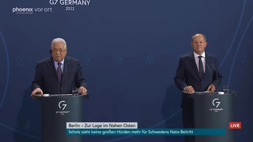 Κύμα τώρα αντιδράσεων στη Γερμανία, αλλά και διεθνώς, έχουν προκαλέσει οι δηλώσεις του προέδρου της Παλαιστινιακής Αρχής Μαχμούντ Αμπάς στην κοινή συνέντευξη Τύπου με τον Όλαφ Σολτς το απόγευμα της Τρίτης στην καγκελαρία. Ο Μαχμούντ Αμπάς κατηγόρησε ευθέως από το Βερολίνο το Ισραήλ ότι έχει διαπράξει «50 Ολοκαυτώματα» σε βάρος Παλαιστινίων, με αφορμή ερώτηση σχετικά με τη συμπλήρωση 50 χρόνων από την επίθεση στην ομάδα του Ισραήλ από Παλαιστίνιους απαγωγείς στους Ολυμπιακούς Αγώνες του 1972.