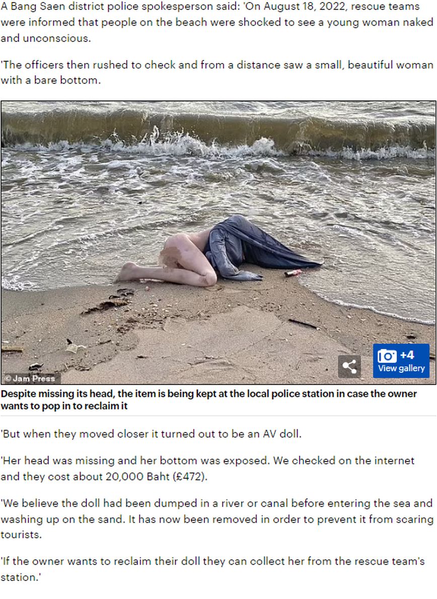 Τα πράγματα όμως ήταν πολύ διαφορετικά από αυτό που φαινόταν ότι είναι. Αντί για ένα ανθρώπινο πτώμα συνάντησαν μια σούπερ ρεαλιστική κούκλα του σεξ. Όπως αναφέρει η Daily Mail, πρόκειται για ένα σύγχρονο ιαπωνικό μοντέλο «AV Idol», του οποίου το κόστος ανέρχεται στα 556 ευρώ.