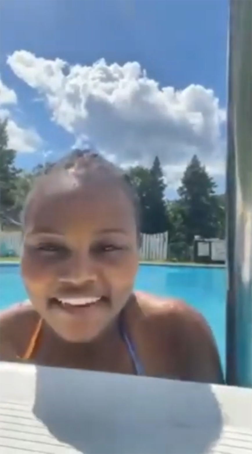 Η ίδια φαίνεται χαμογελαστή να κοιτάζει την κάμερα δευτερόλεπτα πριν ξαναβουτήξει, μόνο που αυτή την φορά πήγε στη μεριά που τα νερά ήταν βαθιά. Τότε, διακρίνεται να μην μπορεί να κολυμπήσει καλά και να κουνάει τα χέρια και τα πόδια της πανικόβλητη, ενώ δυσκολεύεται στην αναπνοή.