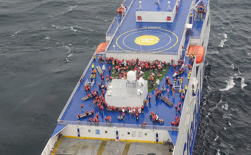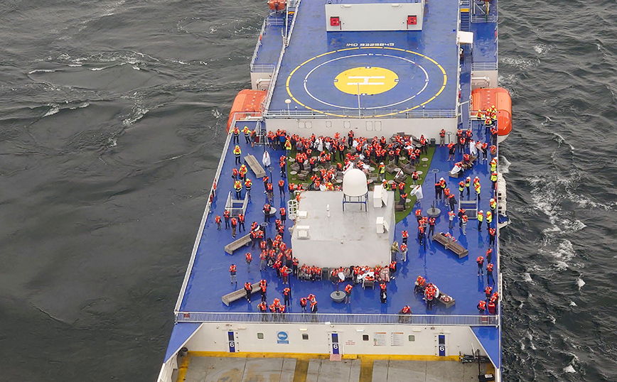 Οι 300 άνθρωποι που επέβαιναν στο οχηματαγωγό (περίπου 240 επιβάτες και 60 μέλη πληρώματος) παρέμειναν πάνω στο πλοίο, σύμφωνα με την εκπρόσωπο, η οποία ανασκεύασε τις αρχικές πληροφορίες σύμφωνα με τις οποίες είχε αρχίσει η εκκένωση του πλοίου.