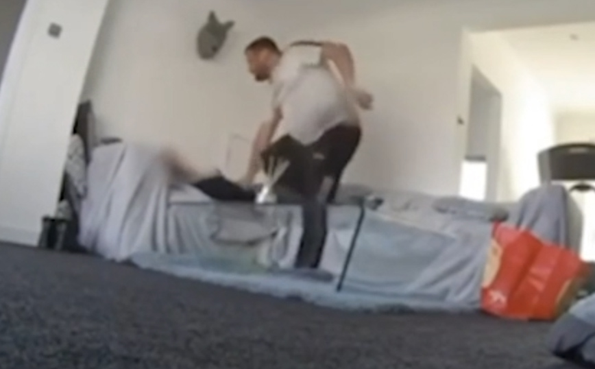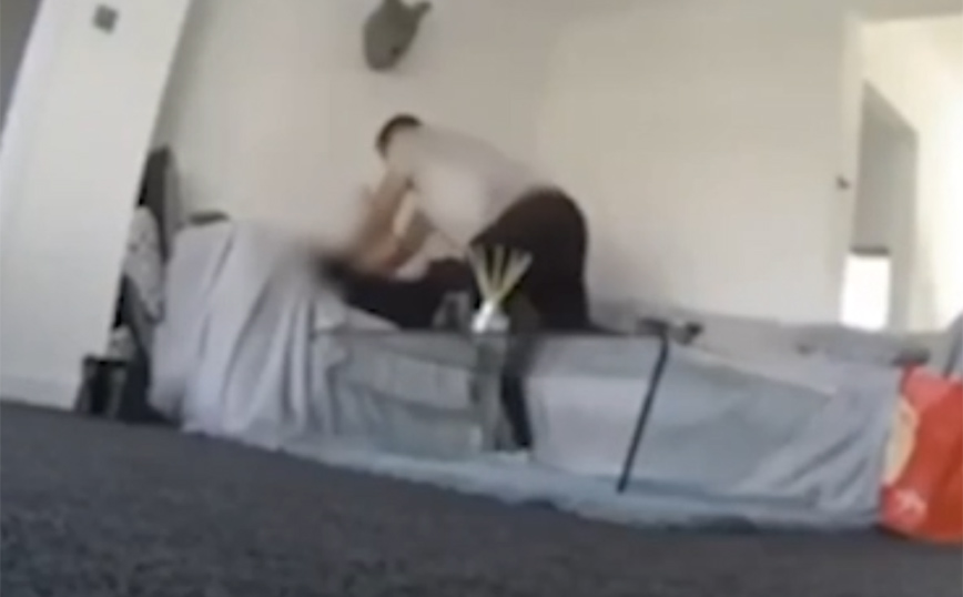 Οι σοκαριστικές εικόνες καταγράφηκαν κρυφά από την κάμερα στο σαλόνι.