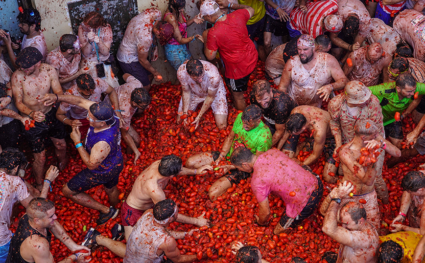 Μετά από δύο χρόνια απουσίας, λόγω της πανδημίας, το φεστιβάλ Tomatina στην Ισπανία επέστρεψε, με τους γλεντζέδες να πετούν 130 ώριμες ντομάτες ο ένας στον άλλο στην πόλη Μπουνόλ της ανατολικής Ισπανίας.