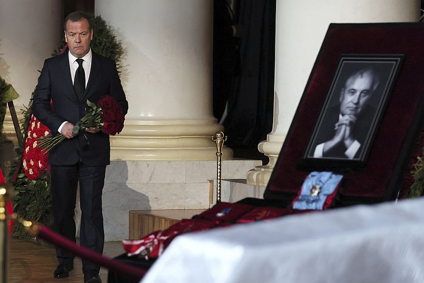Αντίθετα, στην κηδεία πήγε ο πρώην πρόεδρος της Ρωσίας, Ντμίτρι Μεντβέντεφ, κρατώντας ένα μπουκέτο κόκκινα τριαντάφυλλα.
