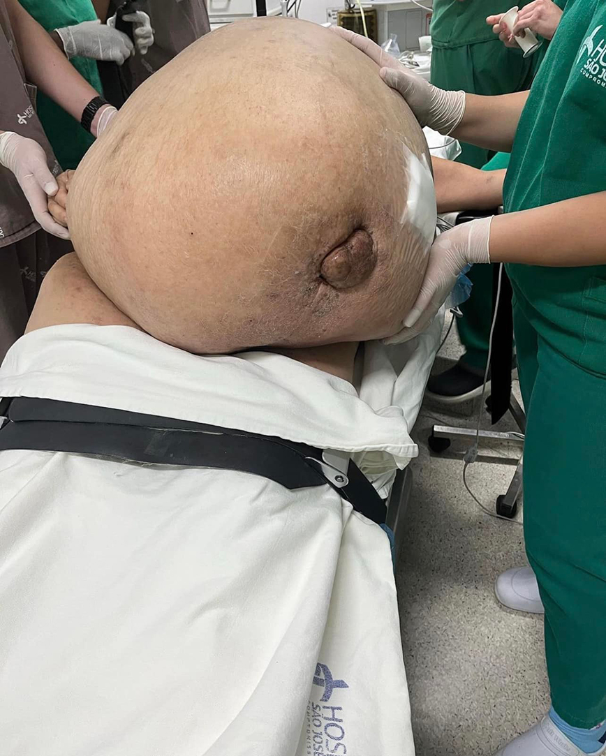 Τότε, οι γιατροί διαπίστωσαν ότι το τεράστιο στομάχι της δεν οφείλονταν σε παραπανίσια κιλά, αλλά σε έναν όγκο, που ήταν 45 κιλά. Μάλιστα, όταν την ρώτησαν για πόσο καιρό αντιμετώπιζε το συγκεκριμένο ζήτημα, απάντησε για πέντε χρόνια, χωρίς όμως να αντιμετωπίσει κάποιο πρόβλημα.