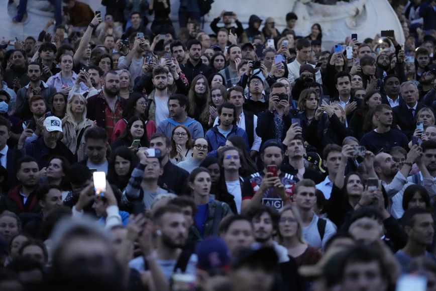 Το κλίμα στην πλατεία μπροστά από το Μπάκιγχαμ ήταν πολύ διαφορετικό πριν από τρεις μήνες, όταν η βασίλισσα εμφανίστηκε στο μπαλκόνι για να χαιρετίσει το τεράστιο πλήθος που απολάμβανε τις εορταστικές εκδηλώσεις του Πλατινένιου Ιωβηλαίου. Σήμερα, η αγωνία μετατράπηκε σε σοκ όταν ανακοινώθηκε ο θάνατός της. Λονδρέζοι και τουρίστες στριμώχνονταν στην πύλη για να διαβάσουν την επίσημη ανακοίνωση.