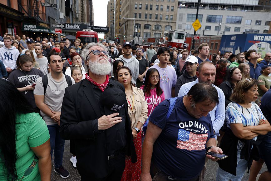Στη Νέα Υόρκη, το πλήθος που συγκεντρώθηκε κοντά στο επιβλητικό μουσείο-μνημείο του Μανχάταν, τήρησε δύο λεπτών σιγή, τη στιγμή που, πριν από ακριβώς 21 χρόνια, τα δύο αεροπλάνα τα οποία είχαν καταλάβει εξτρεμιστές ισλαμιστές έπεσαν πάνω στους δίδυμους πύργους του Παγκόσμιου Κέντρου Εμπορίου.